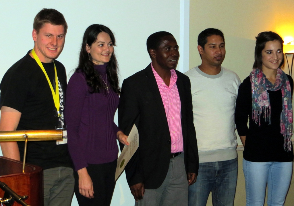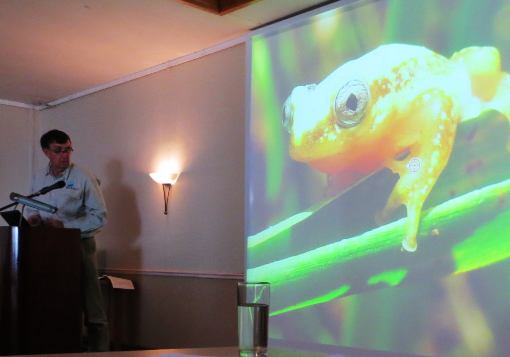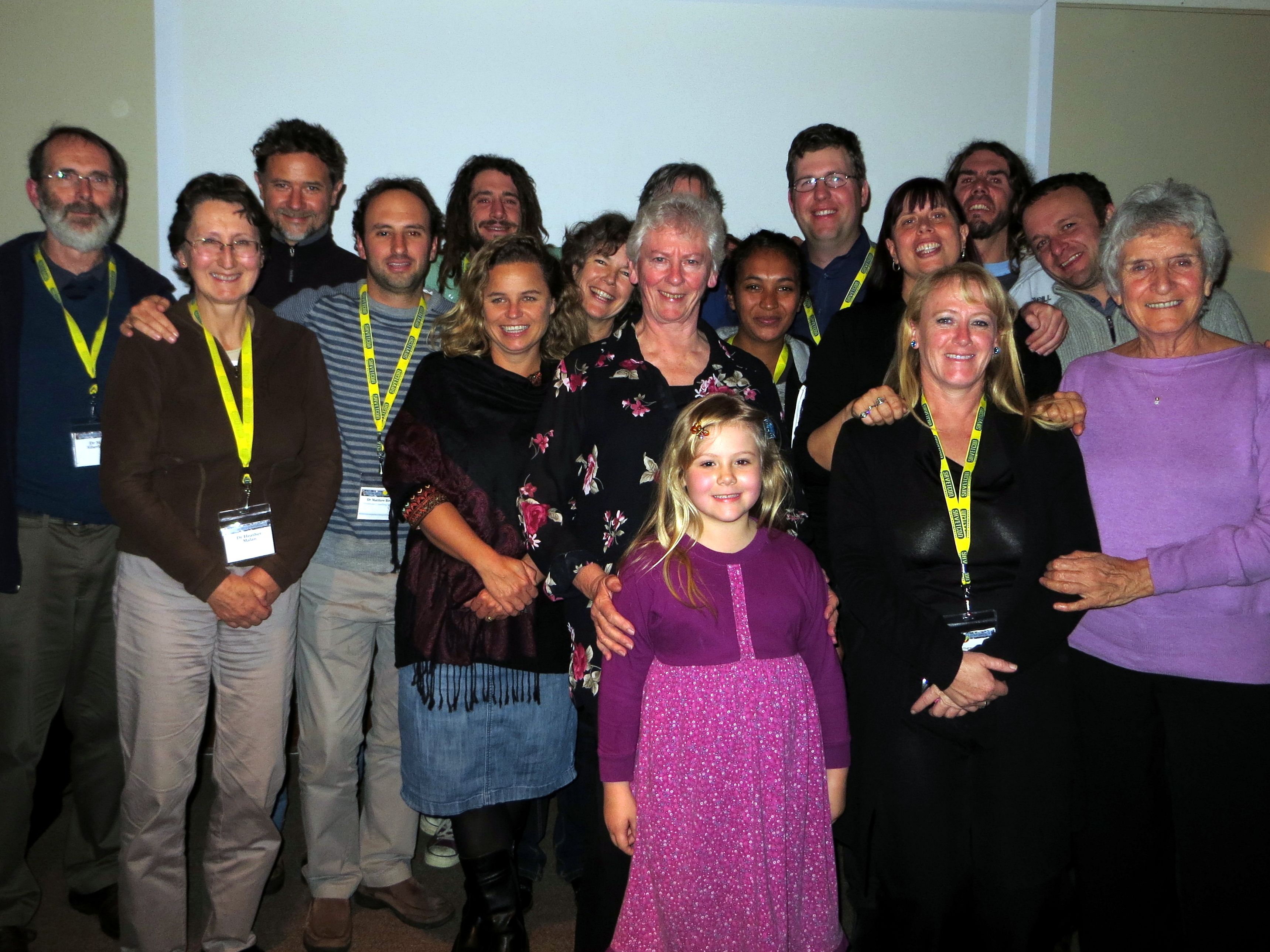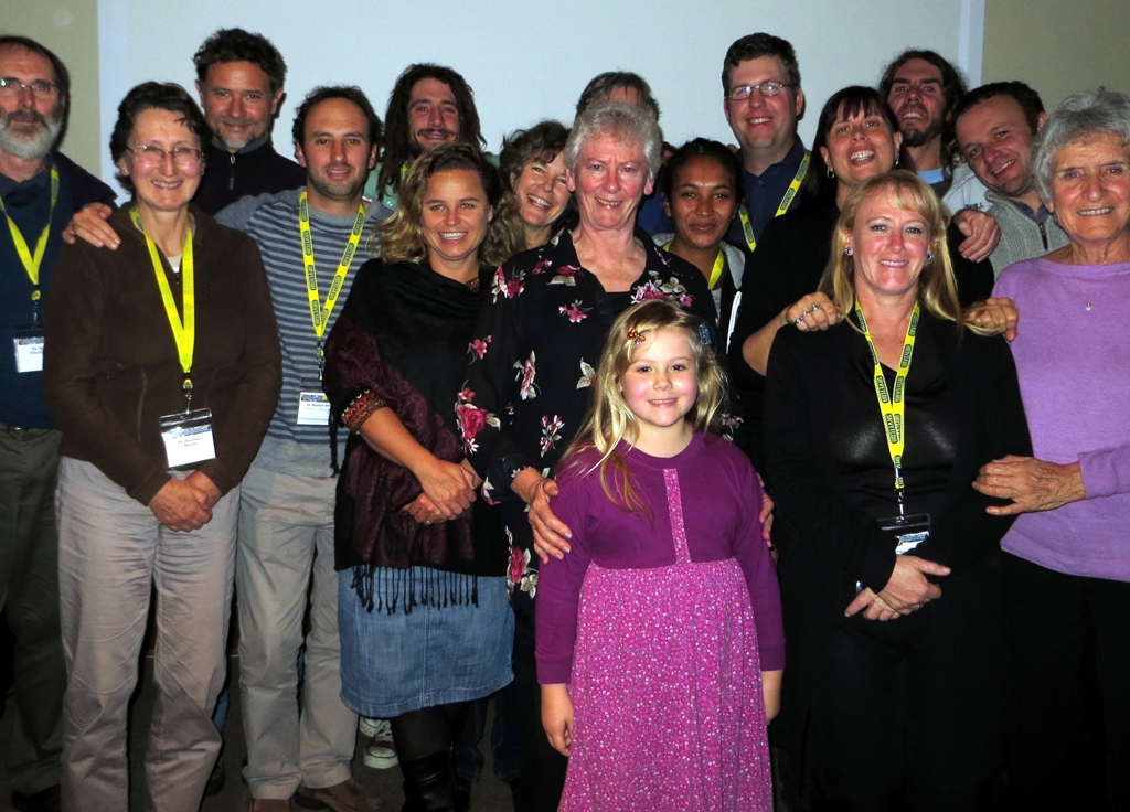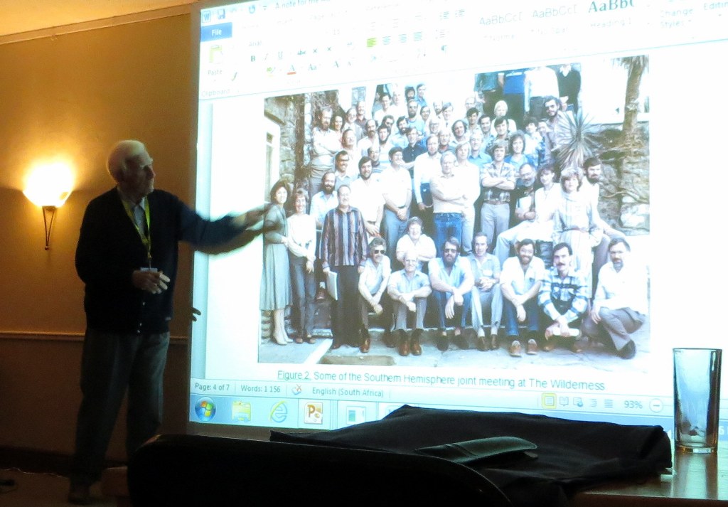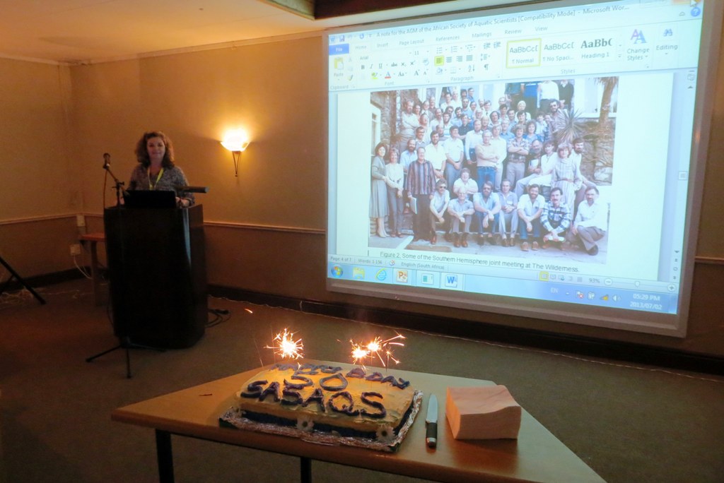Jenny Day, who received the SASAqS gold medal during the conference, surrounded by students, former students and associates from the old Freshwater Research Unit Printable copy of photo - 4Mb.